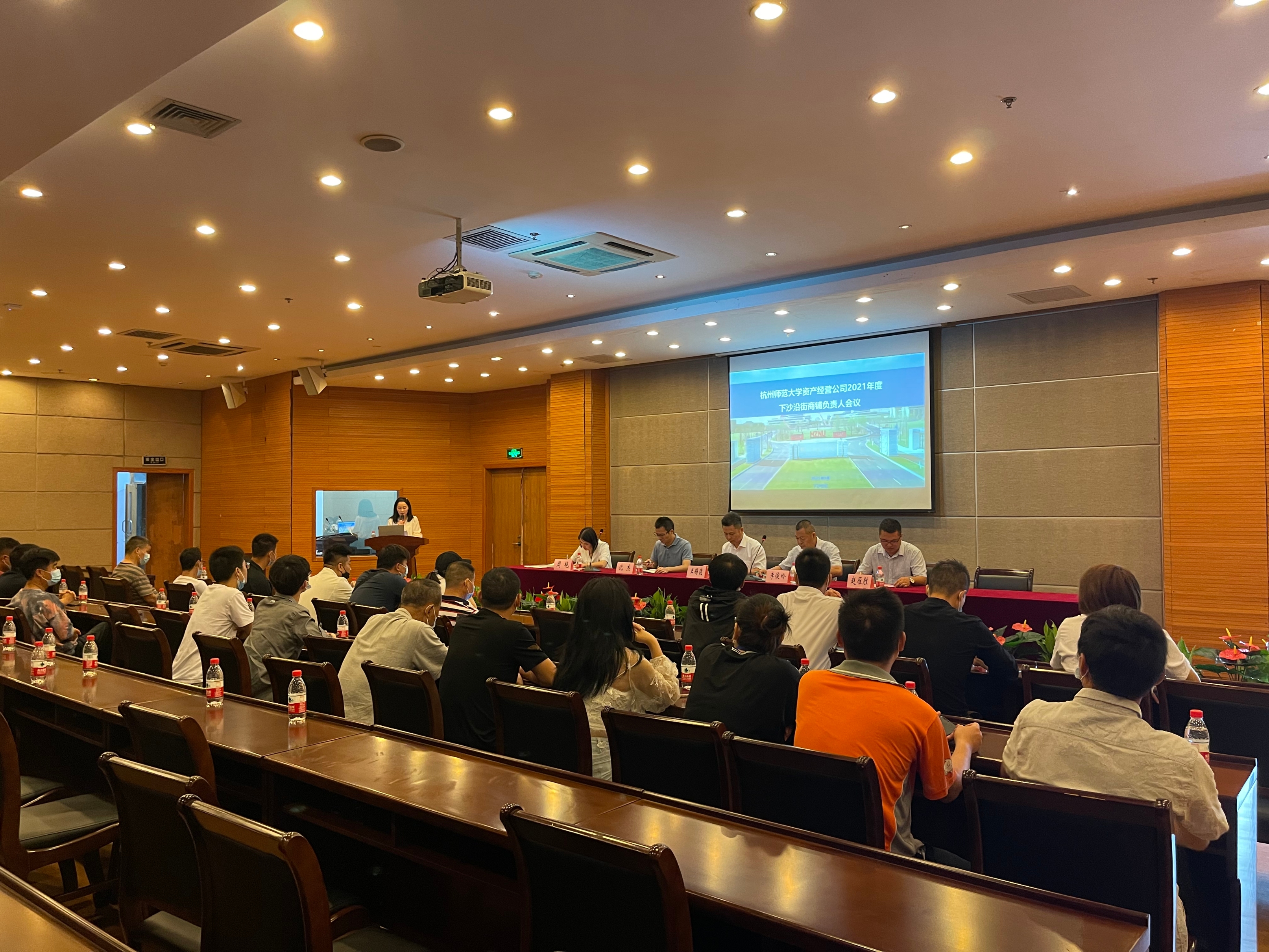 2021年9月14日,杭州师范大学资产经营有限公司在下沙校区召开2021年度下沙沿街商铺负责人会议。校公管与建设处副处长,校党委保卫部副部长、保卫处副处长,资产经营公司相关工作人员及下沙沿街商铺负责人参加会议。