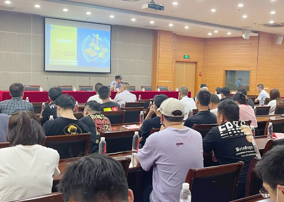 会议邀请了白杨街道派出所余铁城警官进行了专题的法制教育培训。余警官结合经典案例,着重就流动人口管理、劳动纠纷、诚信经营等方面进行讲解和要求。