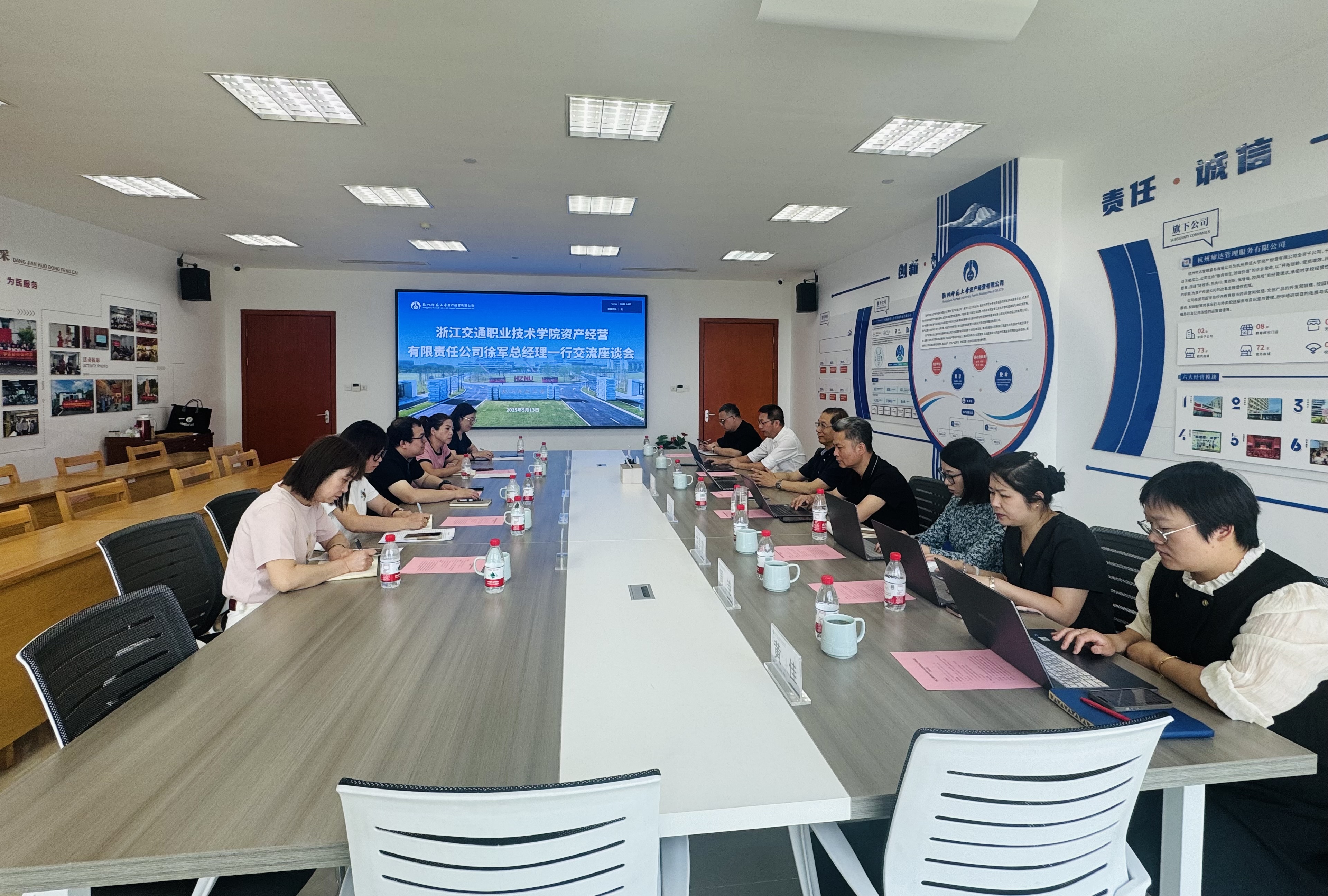 为进一步深化校企合作,共同探索校园商贸服务创新发展新路径,5月13日上午,浙江交通职业技术学院资产经营有限责任公司总经理徐军一行来访交流,杭州师范大学资产经营有限公司党委书记、董事长陈永强,副总经理王锡渡及相关人员陪同接待并交流。