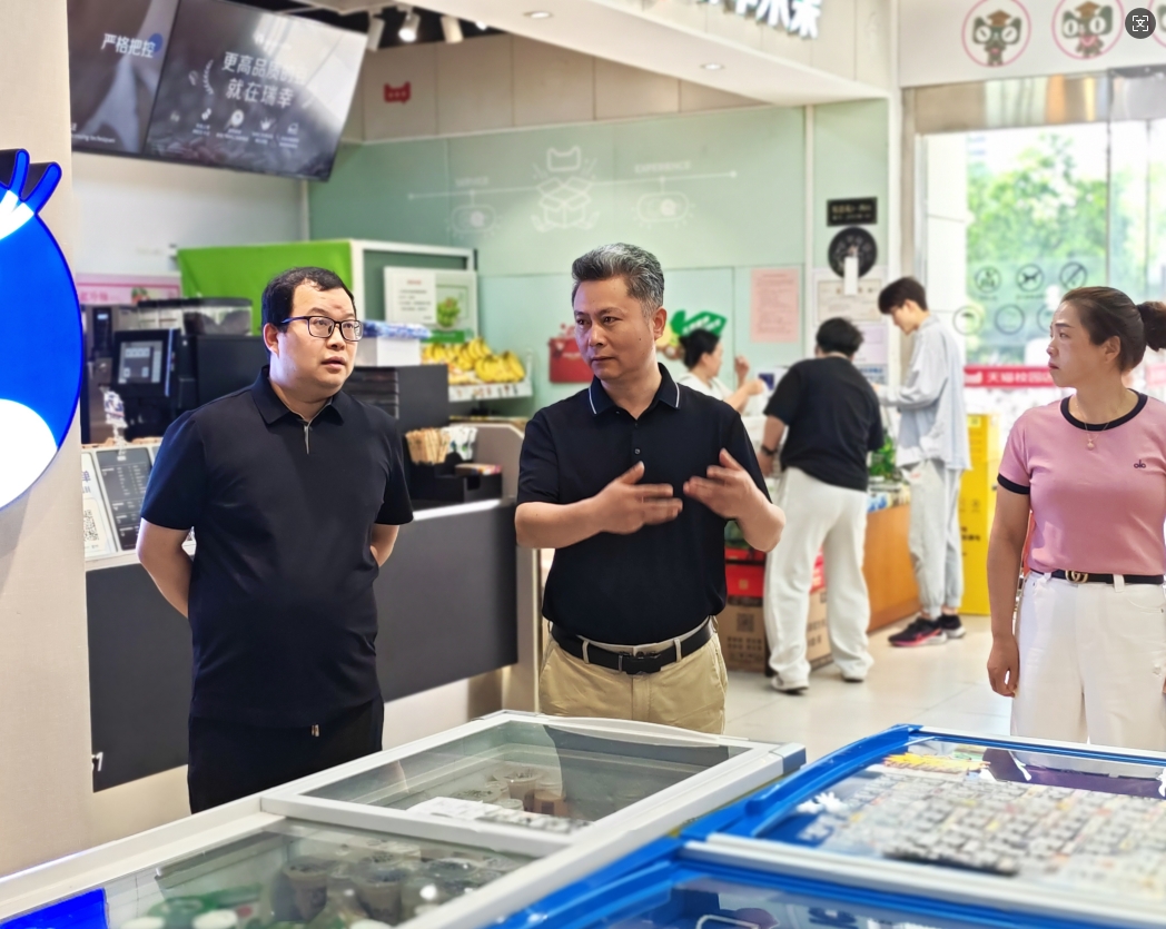 徐军一行实地考察走访了校园文创店、天猫超市、银泰云店、无人超市及“随e达”数智物流枢纽,并现场观摩了“随e行”智慧交通系统的运行场景,双方围绕智能化购物场景的构建、智慧物流体系的优化升级等话题展开热烈讨论,分享了在推进校园商业数智化进程中的实践经验和深刻思考。徐军一行对杭州师范大学在校园商贸服务方面的创新实践给予了高度评价。