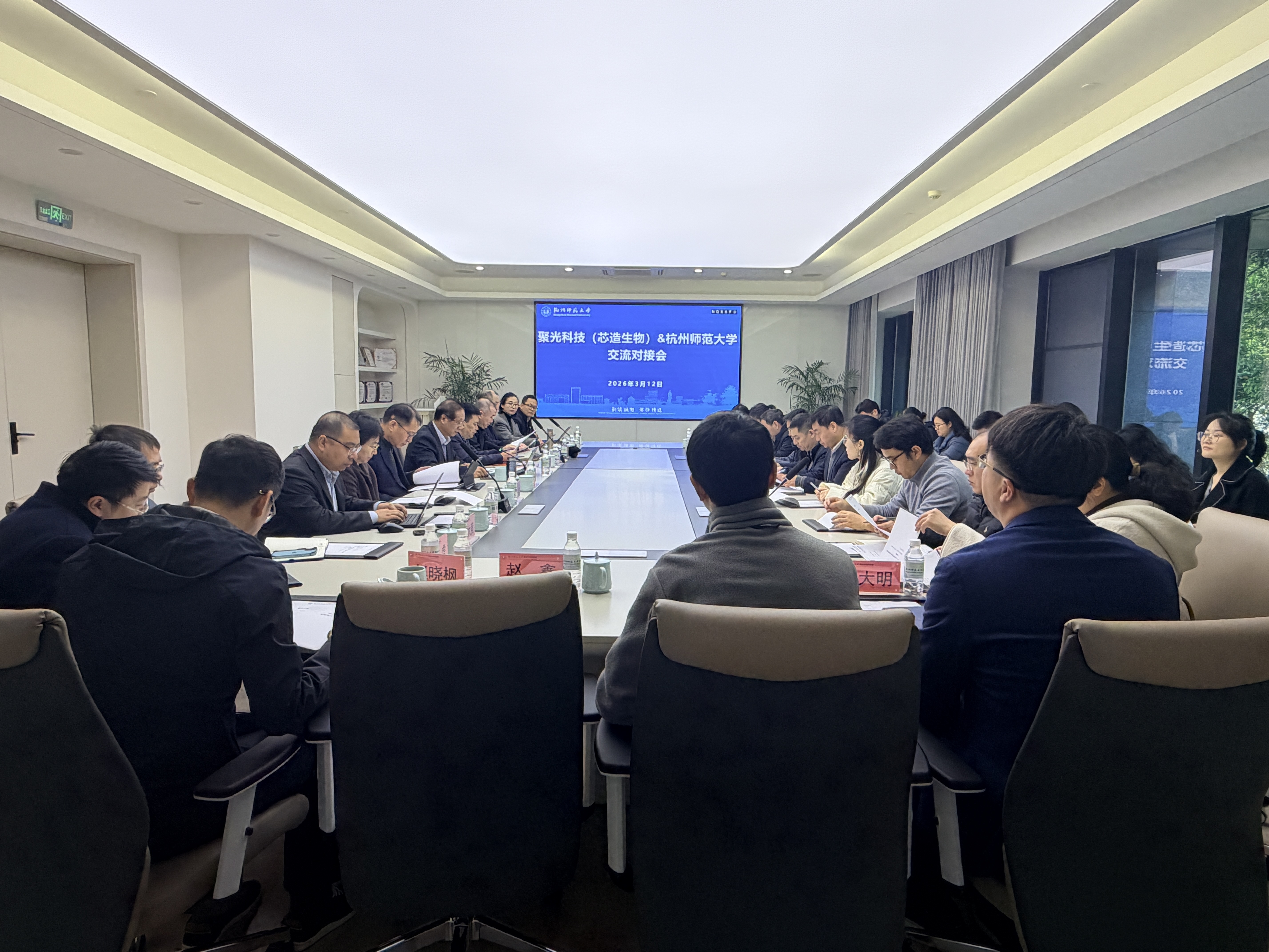 3月12日,正值植树节,一场播撒科技创新种子的校企合作交流会在科技园举行,聚光科技(杭州)股份有限公司创始人王健携旗下谱育科技、芯造生物核心技术团队到访,与杭州师范大学科研处、医学部、前沿科学研究与转化中心、生命与环境科学学院、工学院、基础医学院、药学院、附属医院、资产经营公司、科技园公司等相关部门负责人和专家团队三十余人展开深度对接。资产经营公司党委书记、董事长,科技园公司董事长陈永强教授主持会议,他强调,此次交流旨在围绕联合技术研发、共建联合实验室、联合培养拔尖创新人才三大方向,搭建起科学家与企业家深度对话的平台,推动科技成果与产业需求精准对接。