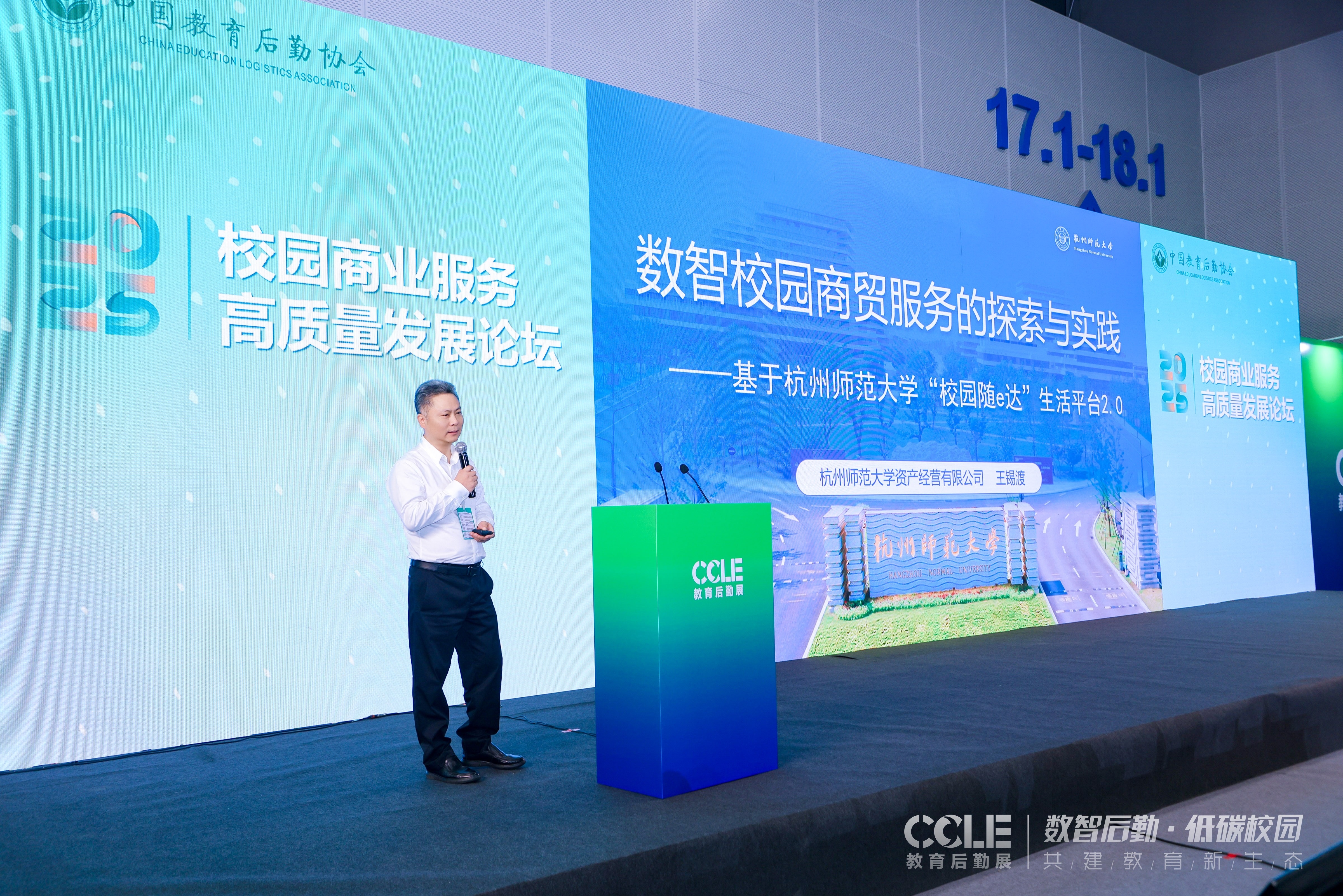 近日,由中国教育后勤协会商贸专业委员会主办的2025校园商业服务高质量发展论坛顺利举办。资产经营公司副总经理王锡渡受邀以“校园随e达”数智生活平台2.0为例在论坛会上作主题报告。作为全国首个数智校园商贸生活综合性服务平台,“校园随e达”向全国高校展现了杭师大在校园商贸管理与服务创新方面的先行探索与实践,为推动高校校园商贸服务高质量发展提供了师大解决方案。