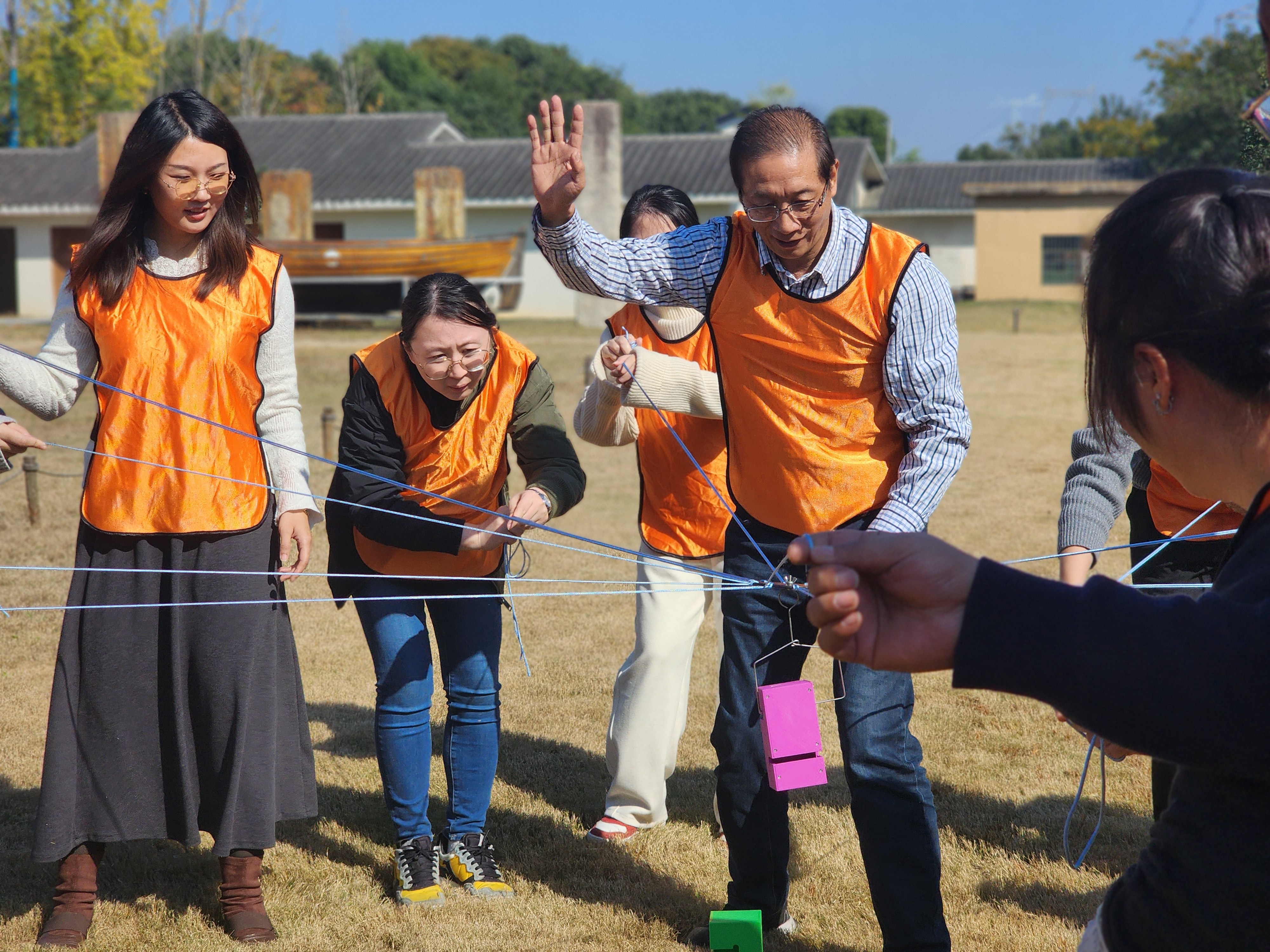 趣味团建,激发团队动能。随后,职工们转场至贝莱特庄园开展廉政主题趣味团建活动。活动紧扣廉洁主题,将团队协作与价值观引导深度融合,通过“合力建塔-修身正己““飞盘打靶-知廉扬清”等环节,强调“守规矩、重协同”的重要性。“合力建塔”考验团队成员的默契配合与责任担当,喻指“唯有坚守底线,同心同德,方能筑牢根基”;“飞盘打靶”以投掷精准度比拼强化目标意识,喻指“廉洁从业需精准发力,久久为功”。现场笑声与掌声不断,大家在互动中增进默契,更在潜移默化中深化了对廉洁文化的理解。