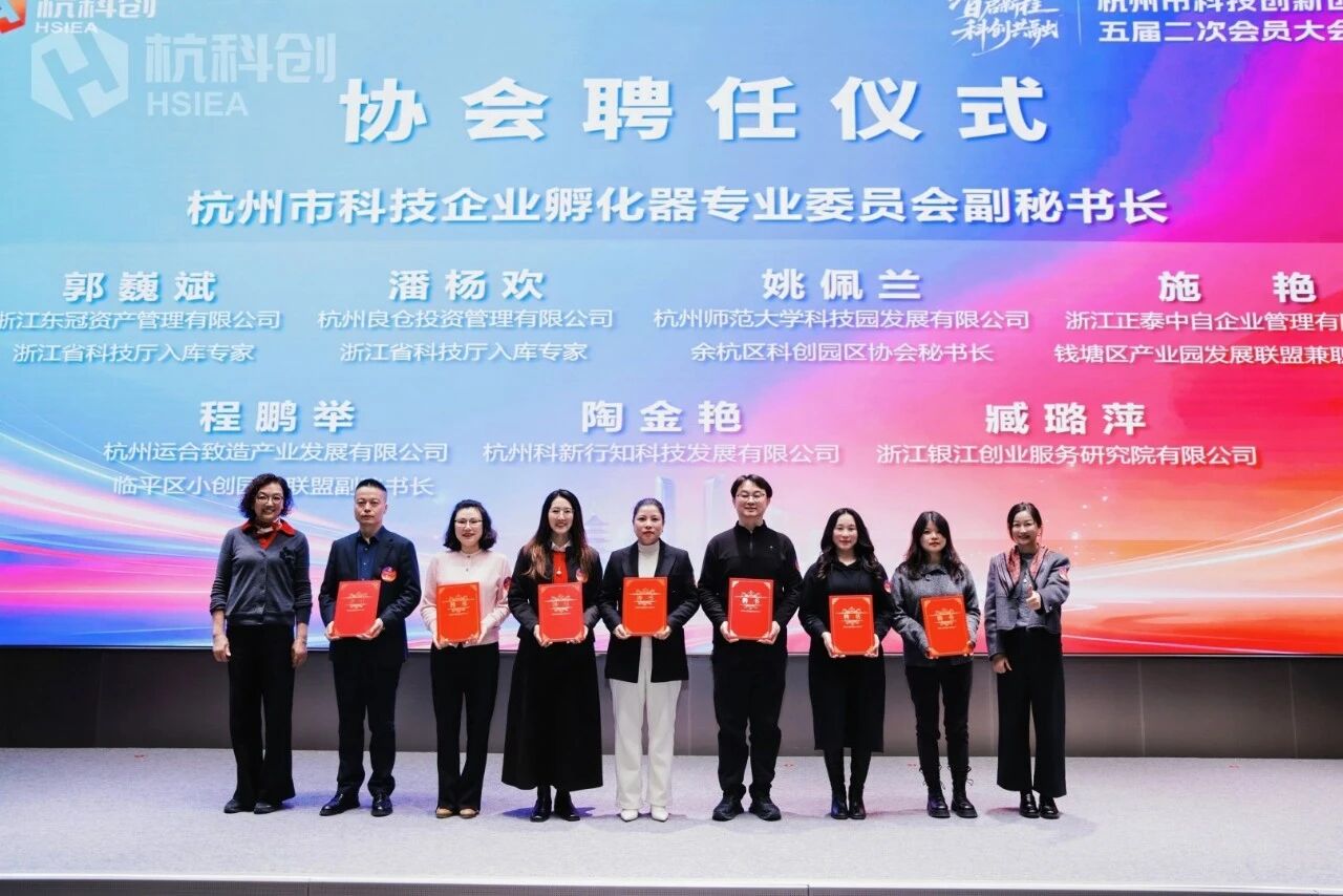 大会表彰环节,科技园凭借其卓越的孵化服务能力、显著的企业培育成果以及良好的产业带动效应,荣获协会颁发的“年度全能孵化先锋奖”。同时,科技园副总经理姚佩兰受聘为杭州市科技创新创业协会科技企业孵化器专业委员会副秘书长。此次获奖与受聘,既是行业对杭州师范大学科技园孵化服务工作的充分肯定,也彰显了科技园在区域创新创业服务体系中的重要地位和推动作用。
